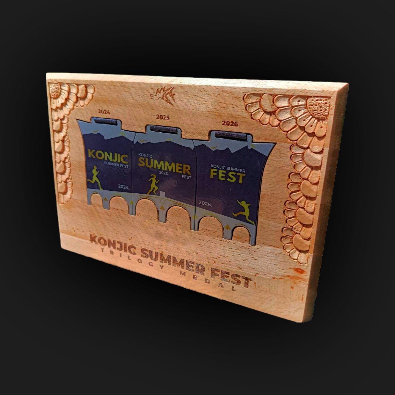 Za trkače koji žele trajni suvenir i poseban način čuvanja uspomena, dostupan je i Trilogy paket, koji uključuje ručno rađeni drveni stalak, nastao u okviru tradicionalnog konjičkog drvorezbarstva. Ovaj unikatni stalak omogućava da se medalje trilogije trajno i dostojanstveno sačuvaju kao podsjetnik na tri godine sporta, emocije i zajedničke priče.
